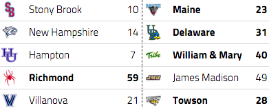 Around the CAA: After hosting ESPN College Game Day in front of an estimated 12,000 attendees, JMU fell to the Richmond Spiders in an absolute shoot out. Over 100 points were put on the board, all occurring in regulation time. Perhaps even worse than the loss itself is the fact that JMU quarterback Vad Lee sustained a potentially season-ending ankle injury. This is good news for the Tribe next week, as the team will take on JMU at home, but we can’t help but feel terrible for JMU fans everywhere. Additionally, UNH lost to Delaware and Villanova lost to Towson. My oh my, how the tables have turned in this year’s CAA.