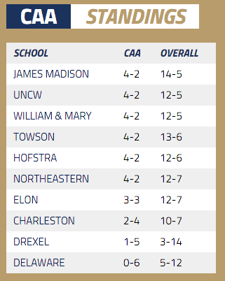 The six CAA teams all have a legitimate shot at winning the CAA Tournament this year and advancing to the NCAA Tournament. And the bottom four teams? Well, they’re all capable of knocking off the top six on any given night–yes, even the lowly Drexel Dragons. Just about every CAA game has been a nail-biter so far; let’s see where the Green and Gold stands at this point in the season