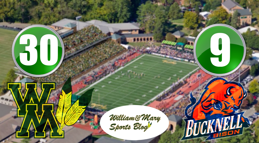 VICTORY! W&M came away victorious in its Home Opener over the Bucknell Bison, extending the team’s short win streak to 2. The Green and Gold got off to a shaky start, but a strong third quarter, in which the Tribe scored 20 points, propelled the team to victory.