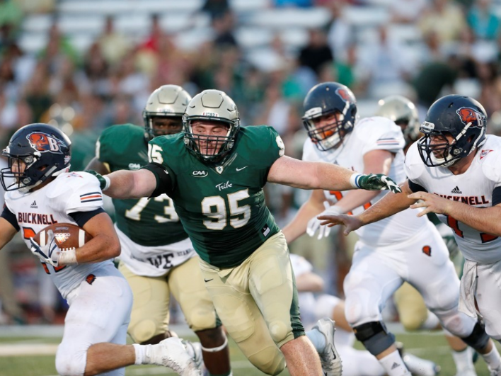 - Rushing Defense: This unit is impressive, to say the least. A season ago, the Tribe gave up 200 rushing yards per game, on average. Not great. However, the trend has not held this year, as the Green and Gold’s stalwart front 7 continues to shut opposing run games down. On Saturday, Bucknell rushed 34 times for, yes, 23 yards. In case you were wondering, that’s an average of 0.7 yards. Are you kidding me? Bonus stat: in the season opener, UVA rushed 32 times for 92 yards (2.9 average), and last week, Norfolk State rushed 30 times for 101 yards (3.4 average). If you combine stats from the first three games (216 total rushing yards against the Tribe), you end up with roughly the number of yards that W&M was giving up on the ground PER GAME last year (207.4). Now that is an incredible improvement. Credit to defensive coordinator Trevor Andrews and his defensive line, led by senior captain/defensive end Matt Ahola, his fellow defensive lineman Isaiah Stephens, and sophomore LB Nate Adkins. Keep an eye on these boys moving forward this year.