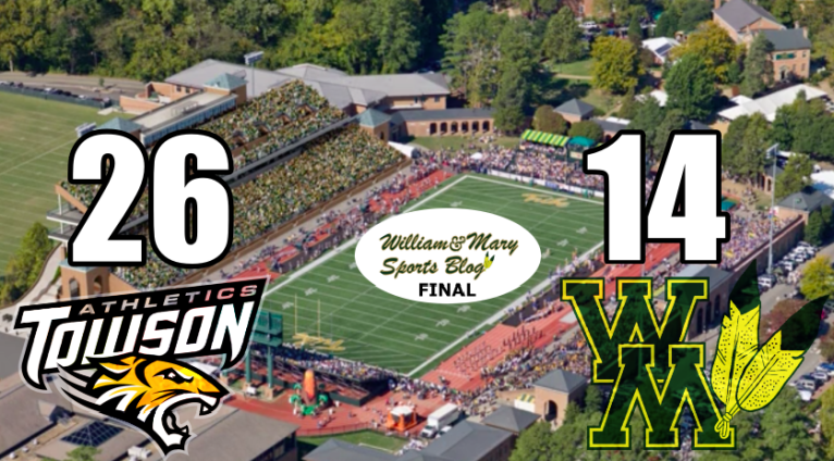 William & Mary dropped its seventh straight game on Saturday, losing by a score of 26-14. The Tribe jumped out to a 14-12 lead, but the Towson Tigers would score the final 14 points of the contest to come away with the victory. While we at the Blog expected this to be a “rebuilding” year, we certainly did not think it would be this bad. I think we join all other Tribe fans in hoping that W&M pulls out a victory in the final game of the season vs. rival Richmond this weekend, breaking the Green and Gold’s current seven-game losing streak. Below, check out our “The Good, The Bad, The Ugly” from this past week’s game vs. Towson, as well as a brief preview of this weekend’s game at Richmond. Roll Tribe Roll!