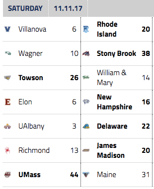 Moving ahead, this weekend is Championship Weekend for the CAA, as three teams will compete for the CAA Championship. JMU has already clinched at least a share of the CAA title, but they face off against Elon this weekend on the road; this game will be for a share of the CAA Championship (similar to W&M vs. Richmond a couple years back). If Elon can get the victory at home over JMU, and if Stony Brook beats Maine, there would be a three-way tie for the CAA Championship, with JMU, Elon, and Stony Brook all nabbing a share of the title (similar to 2015, when W&M, Richmond, and JMU were co-champs).