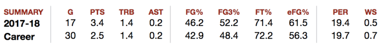 Appeared in 17 games and made 4 starts, averaging 3.4 points and 1.4 rebounds per game … matched a career high with four 3-pointers and finished with 14 points in 24 minutes off the bench at Northwestern (2/22) … recorded 13 points, 3 rebounds, 1 block and 1 assist against Yale (11/12) … scored a season-high 18 points and made his first career start vs. South Carolina State (11/10), finishing with career highs in points (18), rebounds (8) and blocks (2)