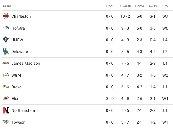 But it’s safe to say that both Charleston and Hofstra are sitting pretty in out of conference play, with the Cougars garnering 10 wins in 12 games and the Pride garnering 9 wins in 12 games. Charleston picked up impressive wins against Rhode Island and VCU, but has largely played against weaker competition in out of conference play. Hofstra also played a relatively weak out of conference schedule, without any truly notable wins, but has picked up wins in the process.