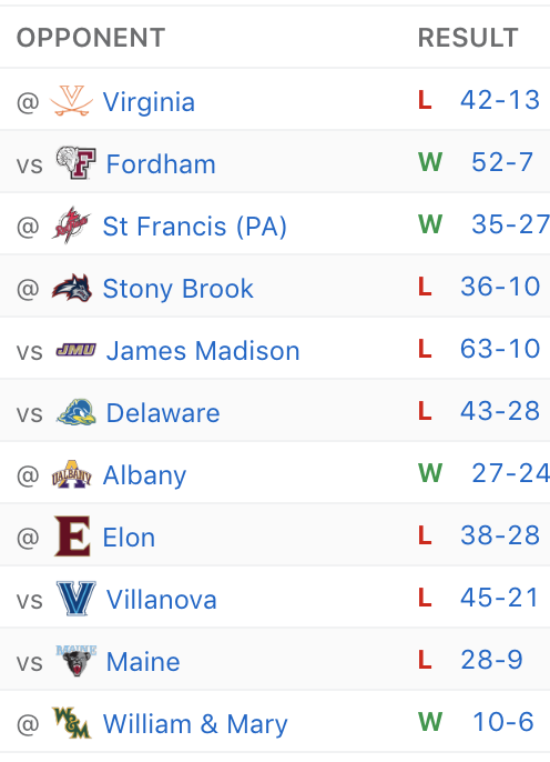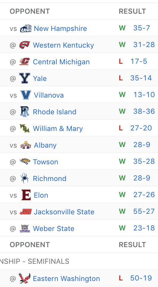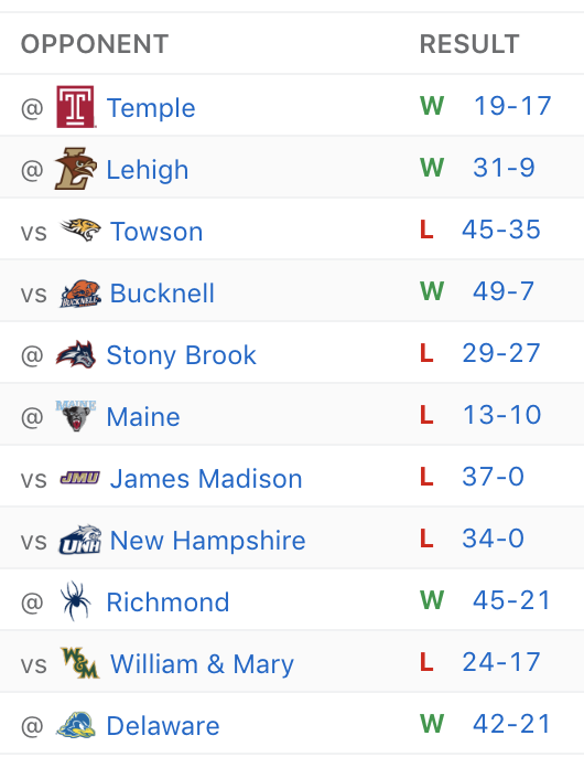 Last season, W&M squeaked out a 25-22 victory over Albany within the friendly confines of Zable Stadium. This season, the Green and Gold will have to travel to the great state of New York for the ball game. But we’re not concerned — Albany is picked to finish #12 of 12 in the CAA this season, and for good reason. They’re missing key pieces on both sides of the ball, and will look to rebuild as best they can in 2019. Tribe soars in this one.