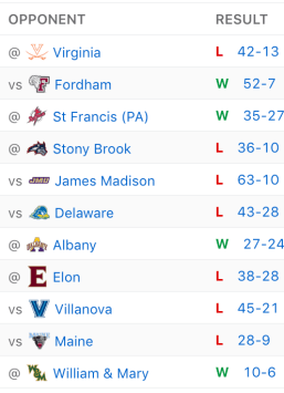 Last year’s W&M vs. Elon contest was cancelled due to weather, so the two will reconvene this Fall. Checking in with several all-league candidates on their offensive unit, the Phoenix are led by stellar play on that side of the ball. This will be yet another strong test for the W&M defense, after facing Maine and JMU in back-to-back weeks (ouch). No rest for the weary! We think W&M rights the ship in a hard fought contest against Elon this week. But it won’t be easy.