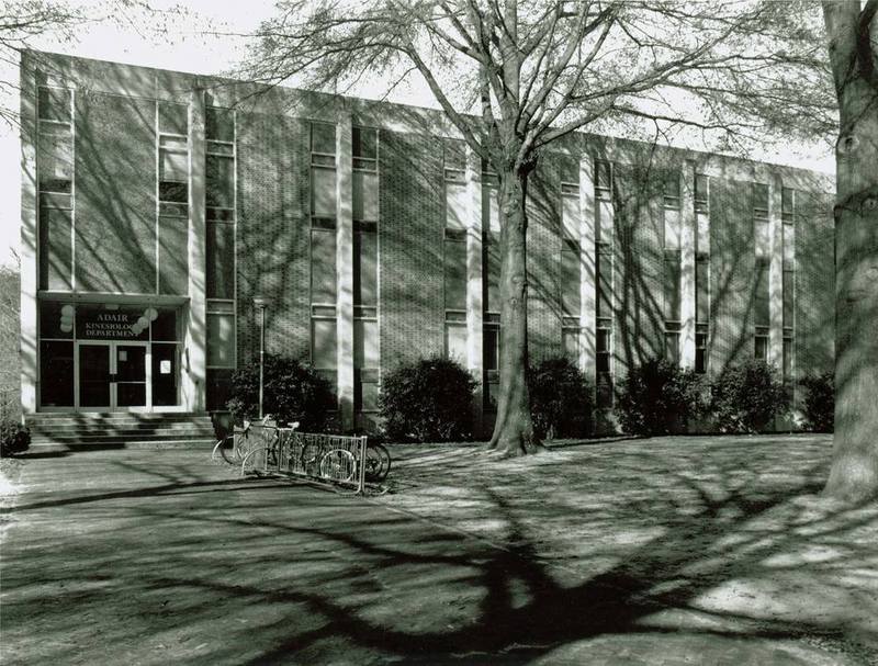 Cornelia Storrs Adair Gymnasium, 1963: The exterior of Cornelia Storrs Adair Gymnasium in 1963. [Source: University Archives Photograph Collection, UA 8; Creator: William & Mary]