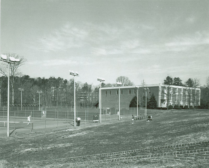 The tennis courts were re-purposed for use as the present day parking garage (circa 2006) which also houses the W&M Police Department and the Parking Office.