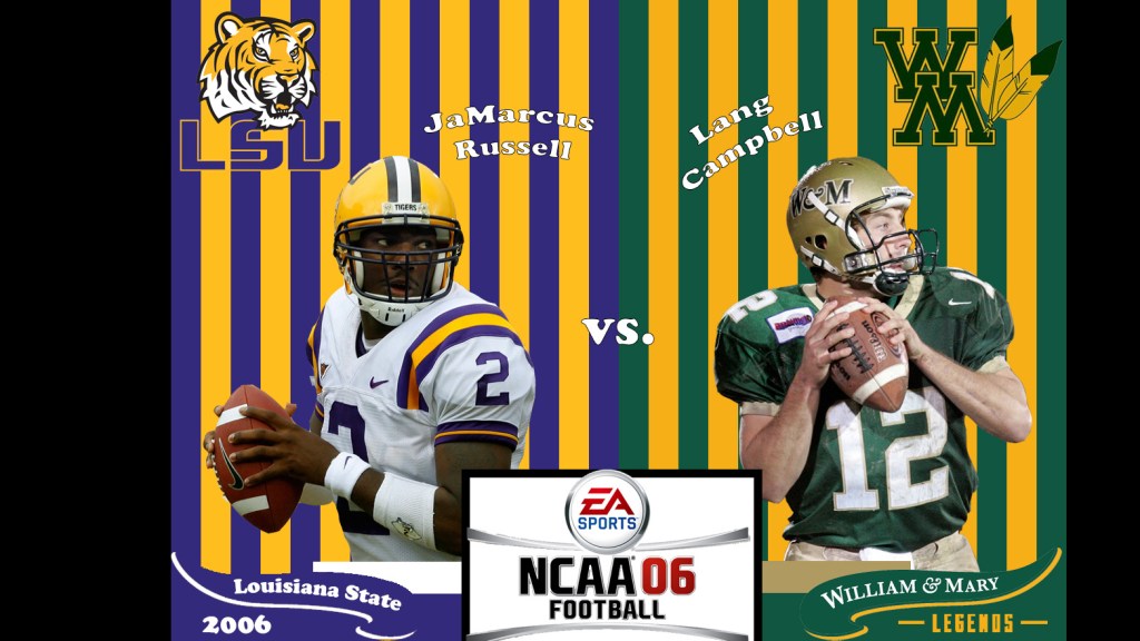 Well, ladies and gentlemen, we present to you an NCAA 2006 game between the William & Mary Legends vs. the 2006 LSU Tigers.
