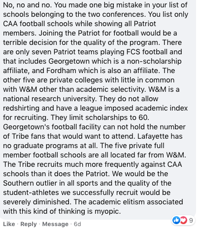 I want to clarify: we at the WMSB aren’t saying that we favor W&M moving to the Patriot over the CAA. Instead, we’re simply pointing out the possibility in hopes of stirring legitimate, intelligent back and forth within the Tribe community.