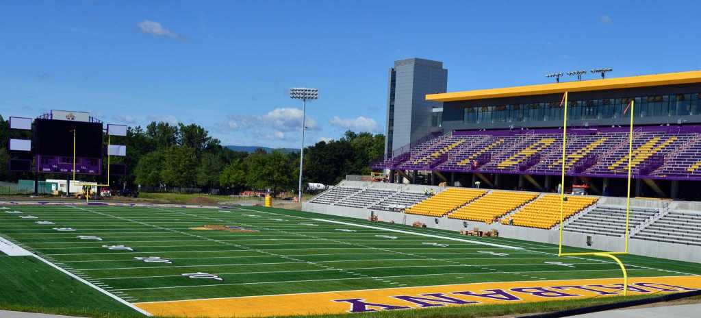 WMSB Take: There’s just something awesome about this stadium. The grandstand, immaculately designed with three distinct levels, looks great in purple and gold. Modern and ultra-sleek, the grandstand spills directly onto the field — no track in sight. The third smallest stadium in the CAA, one can expect a great gameday experience in Albany.