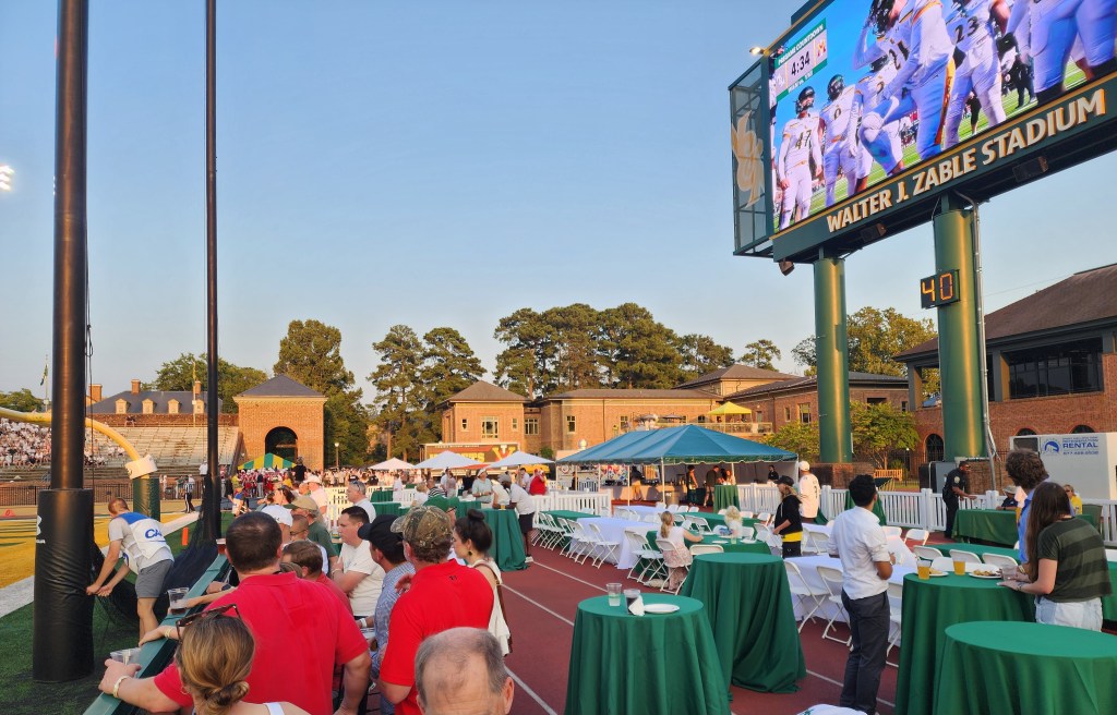 Another component about the venue that I found interesting was just how much space the 3 private venues took up in comparison to where I was sitting. I would wager that half of the space was closed off by fencing for someone with a general TD Club ticket. If you thought the Tailgate Terrace was packed during Homecoming in year’s past, well, things could get very tight very quick for 2024.