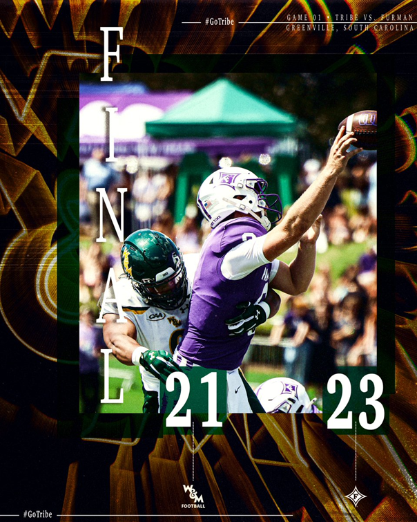 William & Mary opened the 2025 football season with a heartbreaker, falling 23–21 to Furman on Saturday night after a late field goal spoiled the Tribe’s season opener. The Tribe led 21-14 midway through the 3rd quarter, but Furman went on to kick three field goals while holding the Tribe scoreless for the last 20 minutes of regulation. Below, we break down, “The Good, Bad, and Ugly” from this past Saturday’s game in Greenville, South Carolina.