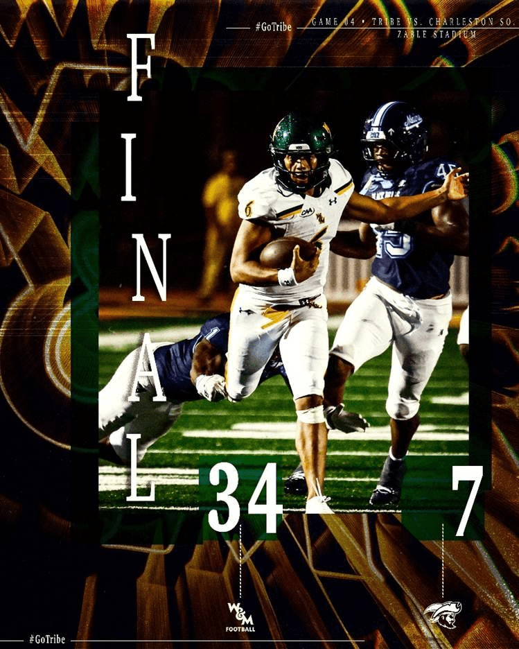 William & Mary rolled to a 34–7 victory over Charleston Southern, giving head coach Mike London his 100th career win. After the Buccaneers briefly tied the game at 7–7 in the second quarter, the Tribe regained control with a touchdown just before halftime and never looked back—adding three more scores in the second half while the defense completely shut Charleston Southern down.